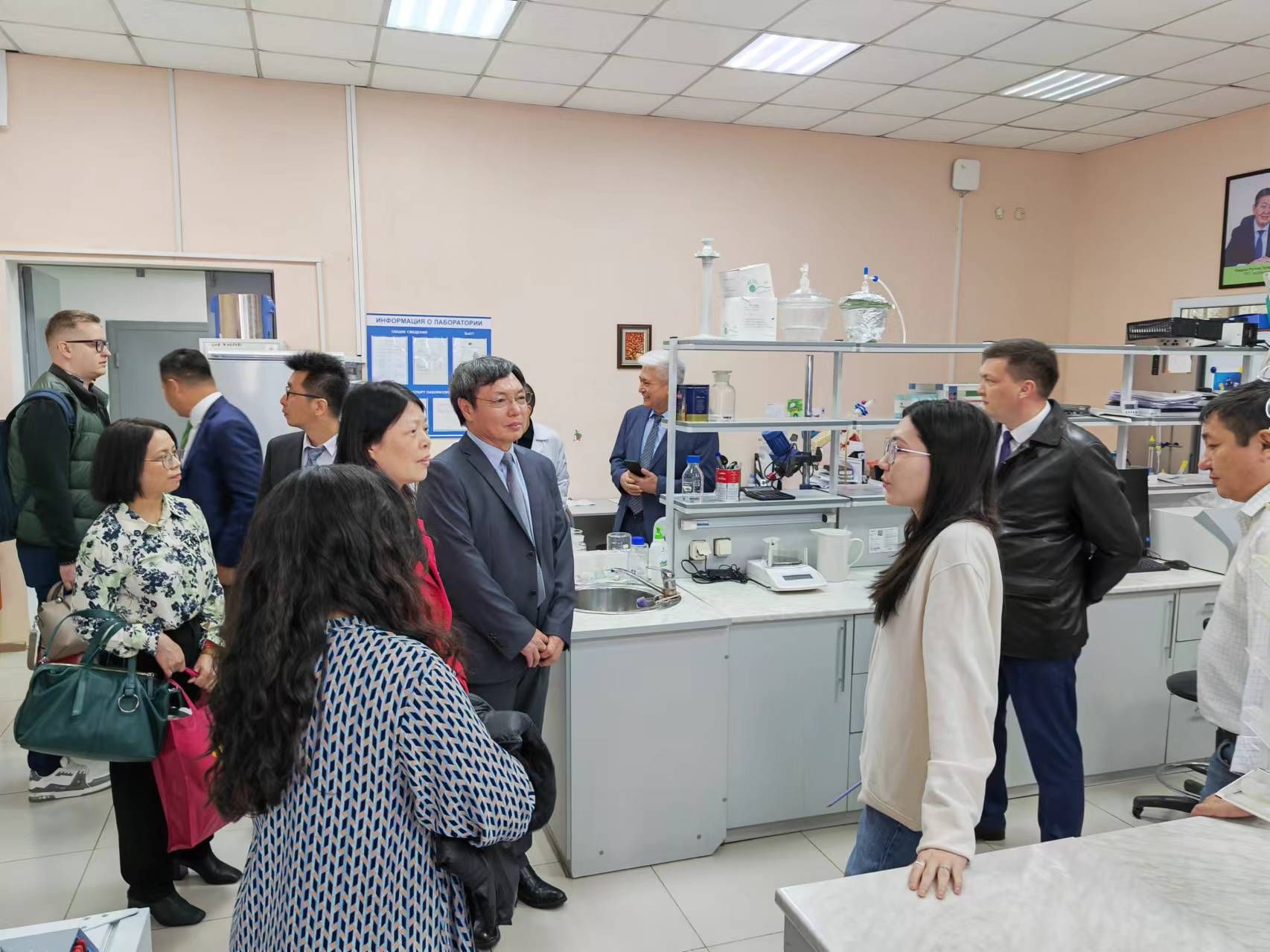 访问哈萨克斯坦欧亚国立大学期间,代表团成员与该校相关部门负责人进行了专业、课程、实验教学、教师交流、学生培养等方面的座谈交流,探讨了进一步深化人才培养与科研创新合作的途径、产教融合与资源共享等问题,取得了良好的共识。会谈后,代表团参观了设立在欧亚国立大学的博物馆、原子核物理学实验室及该校图书馆、学生宿舍和自然科学学院的材料制备实验室、检测实验室、化验实验室、遗传与育种实验室、仪器室、有机化学实验室等设施,走访了欧亚国立大学自然科学学院生物系和化学系。通过深入交流和实地参观,两校加深了了解、增进了友谊,为进一步推进合作办学机构建设工作奠定了基础。