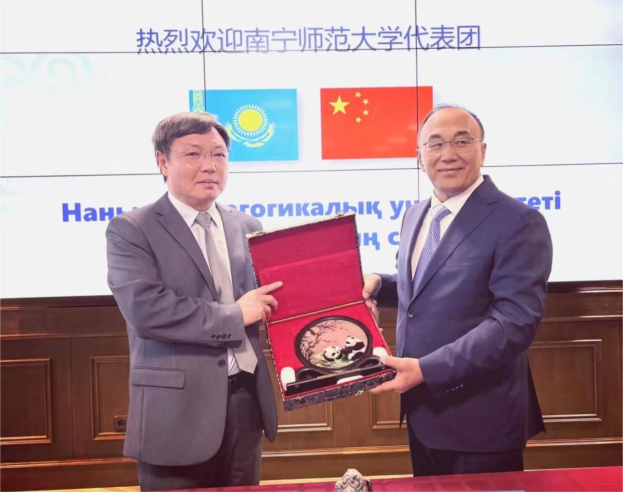 与欧亚国立大学西德科夫校长互赠纪念品