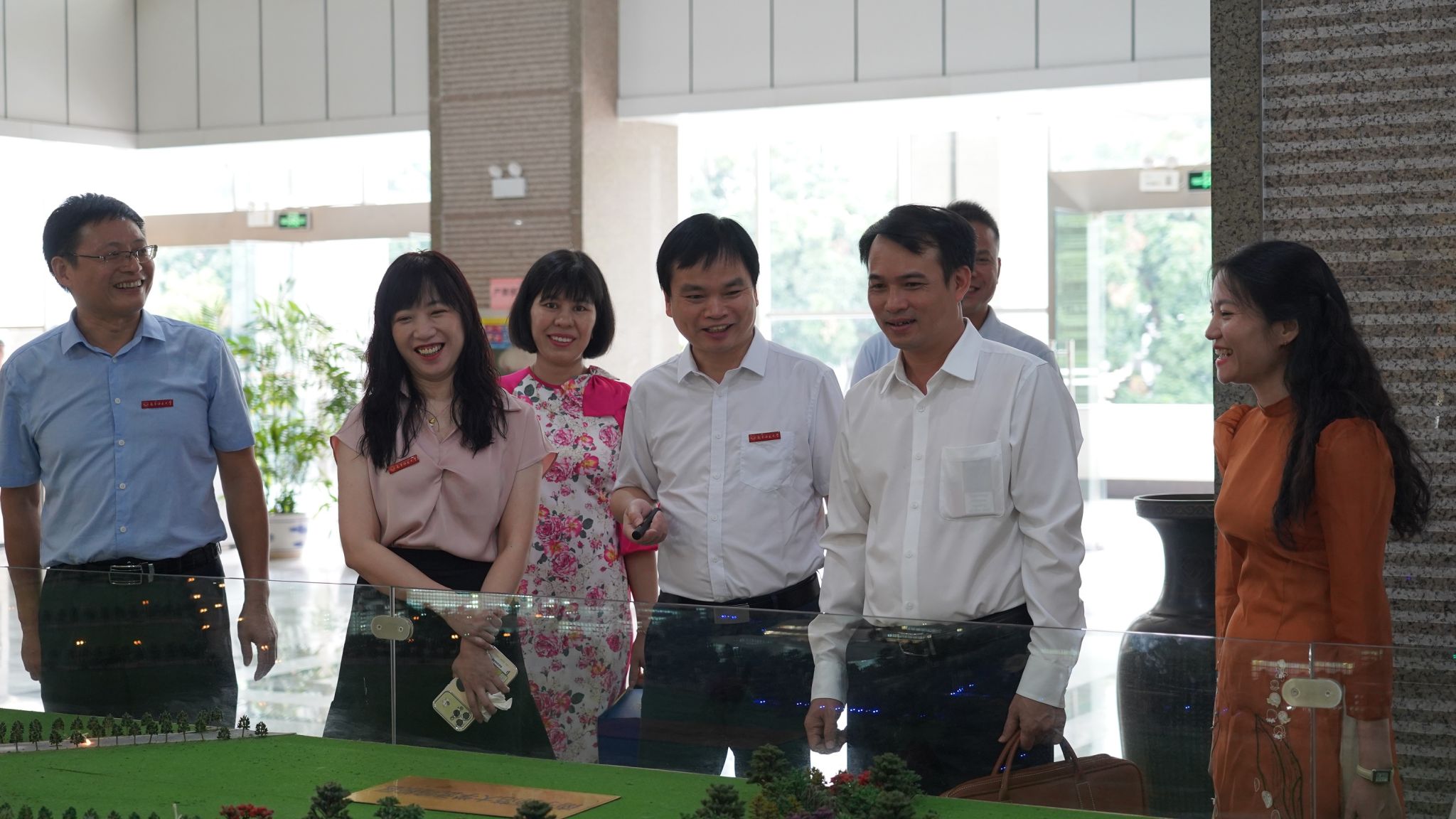会前,肖琦副校长陪同代表团一行参观了学校沙盘,教师教育展。