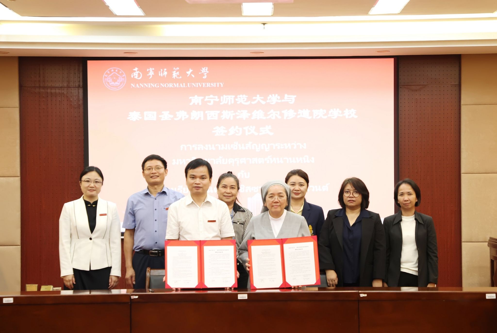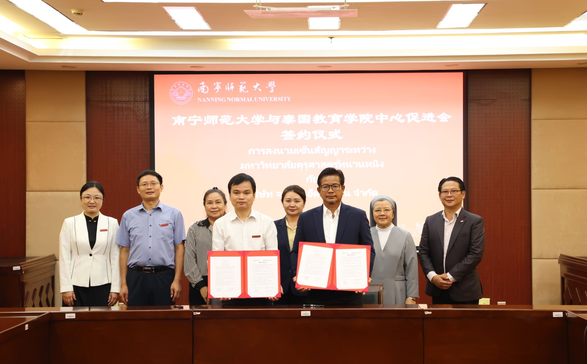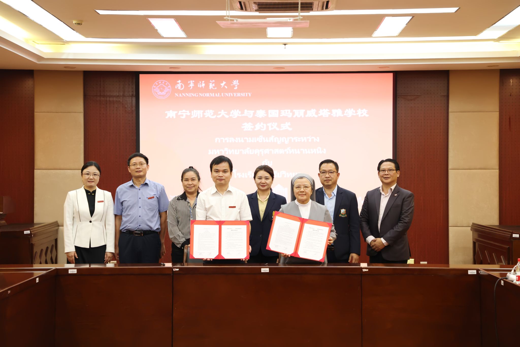 随后,与会代表围绕师生交流互访、学生实习、来华留学生招生及开展更多领域合作等内容进行了深入交流探讨。我校与泰国圣弗朗西斯泽维尔修道院学校、泰国国王学院、泰国玛丽威塔雅学校、泰国教育学院中心促进会分别签署了教育合作备忘录。