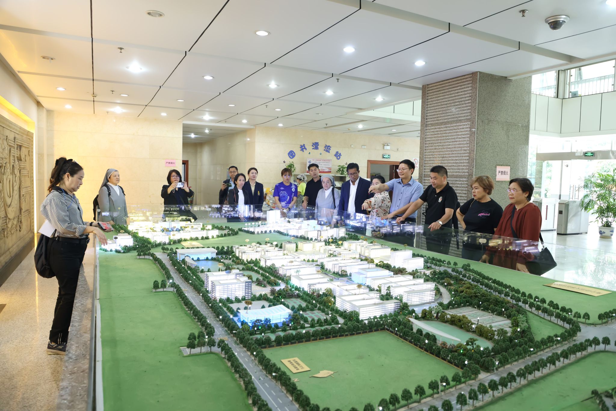 会前,代表团一行参观了学校泰语文化中心、学校沙盘、教师教育展。