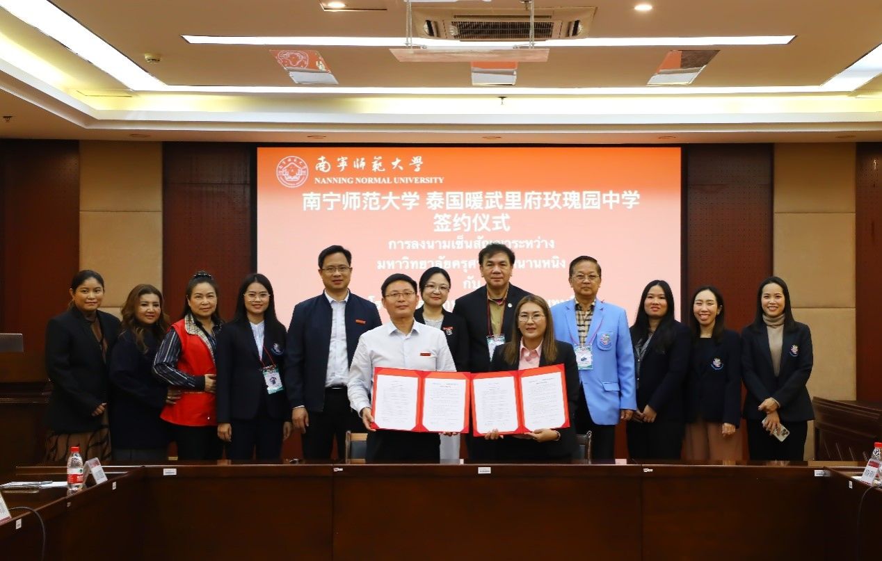 随后,在图书馆二楼会议室召开bw必威西汉姆联与泰国暖武里府玫瑰园中学座谈会,与会双方一同观看了两校宣传专题片,围绕教师培训、学生实习等方面开展合作进行了深入交流,我校与泰国暖武里府玫瑰园中学签订了教育合作备忘录。