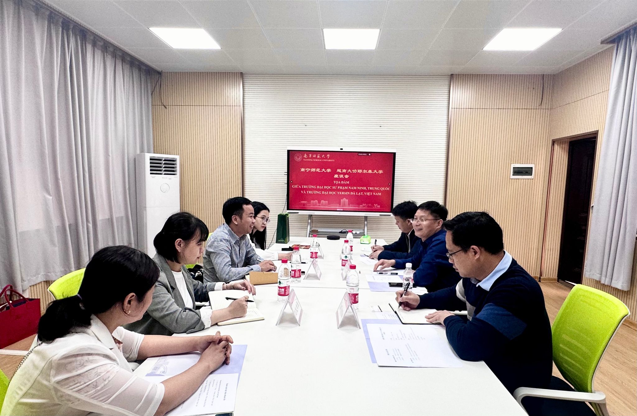 2025年3月4日下午,越南大叻耶尔森大学外国语与东方学系阮伟通主任一行4人到我校访问。我校国际交流合作处处长、国际教育学院院长杨绪明,国际交流合作处副处长/国际教育学院副院长陈传忠及国际交流合作处相关工作人员,在明秀校区外语楼109会议室接待了来访代表并进行了会谈。双方就师生互访交流、学科专业建设、实习实践活动等合作事宜进行了深入交流探讨,达成了促成两校长期交流合作并签署教育合作备忘录的共识。