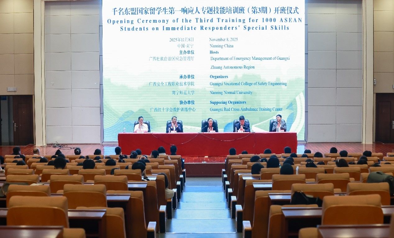 2025年11月8日至9日,由广西壮族自治区应急管理厅主办,我校与广西安全工程职业技术学院共同承办,广西红十字会救助训练中心协办的“千名东盟国家留学生第一响应人”专题技能培训班在我校五合校区开班。